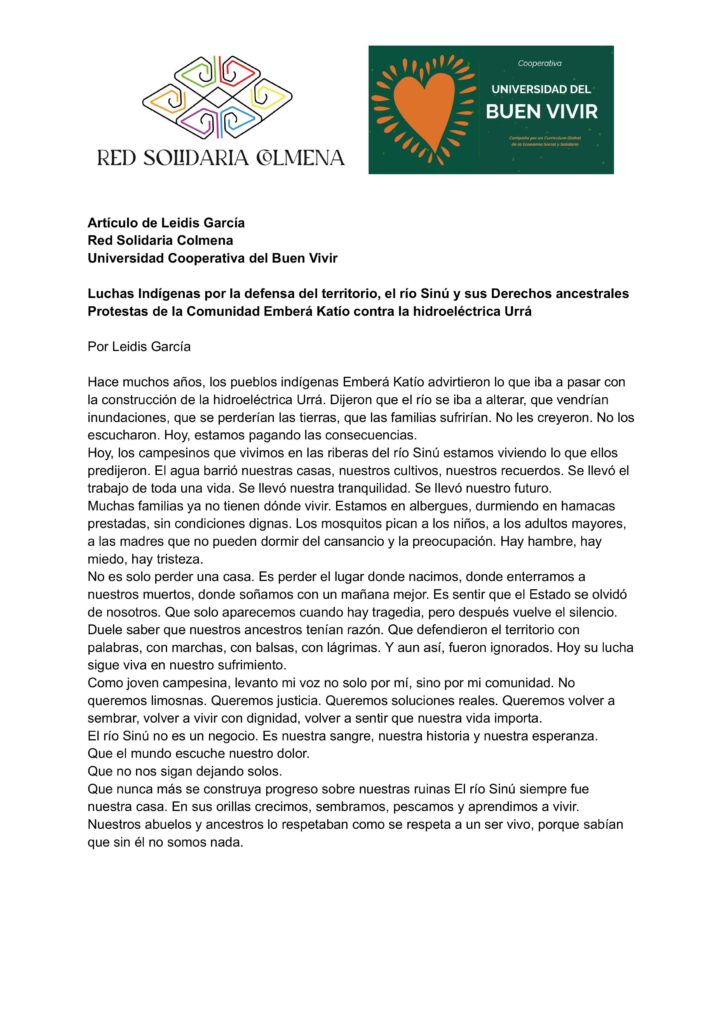 S.O.S Tierralta - Córdoba nos necesita. Leidis García- Red Solidaria Colmena RSC presentación II Conferencia Internacional de la Reforma Agraria Cartagena, Colombia Mujeres en RSC-Universidad del Buen Vivir