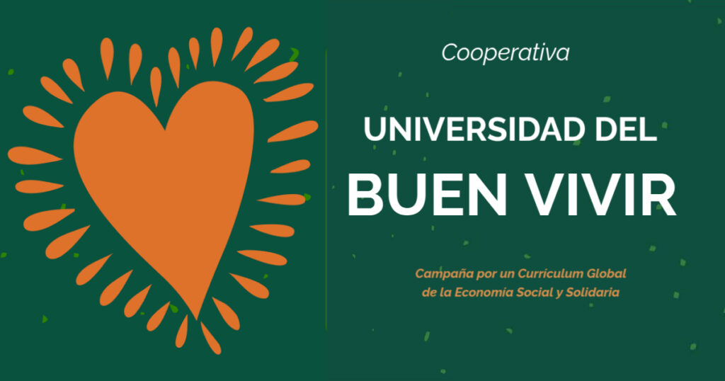 La Universidad Cooperativa del Buen Vivir es una Alianza Global por la educación para otras economías para la Vida. Construye propuestas educativas de formación, investigación no capitalistas, feministas, decoloniales con organizaciones y movimientos sociales y en la actualidad se complementa como herramienta política al servicio de los pueblos, que colabora para resolver las necesidades socioeconómicas de colectivos de economías alternativas al capitalismo, comunidades migrantes, grupos autogestionados.as, organizaciones, movimientos sociales y espacios gubernamentales.