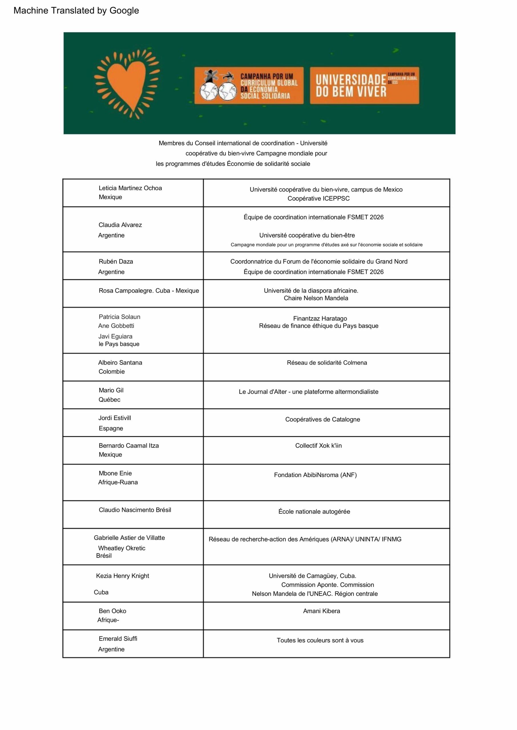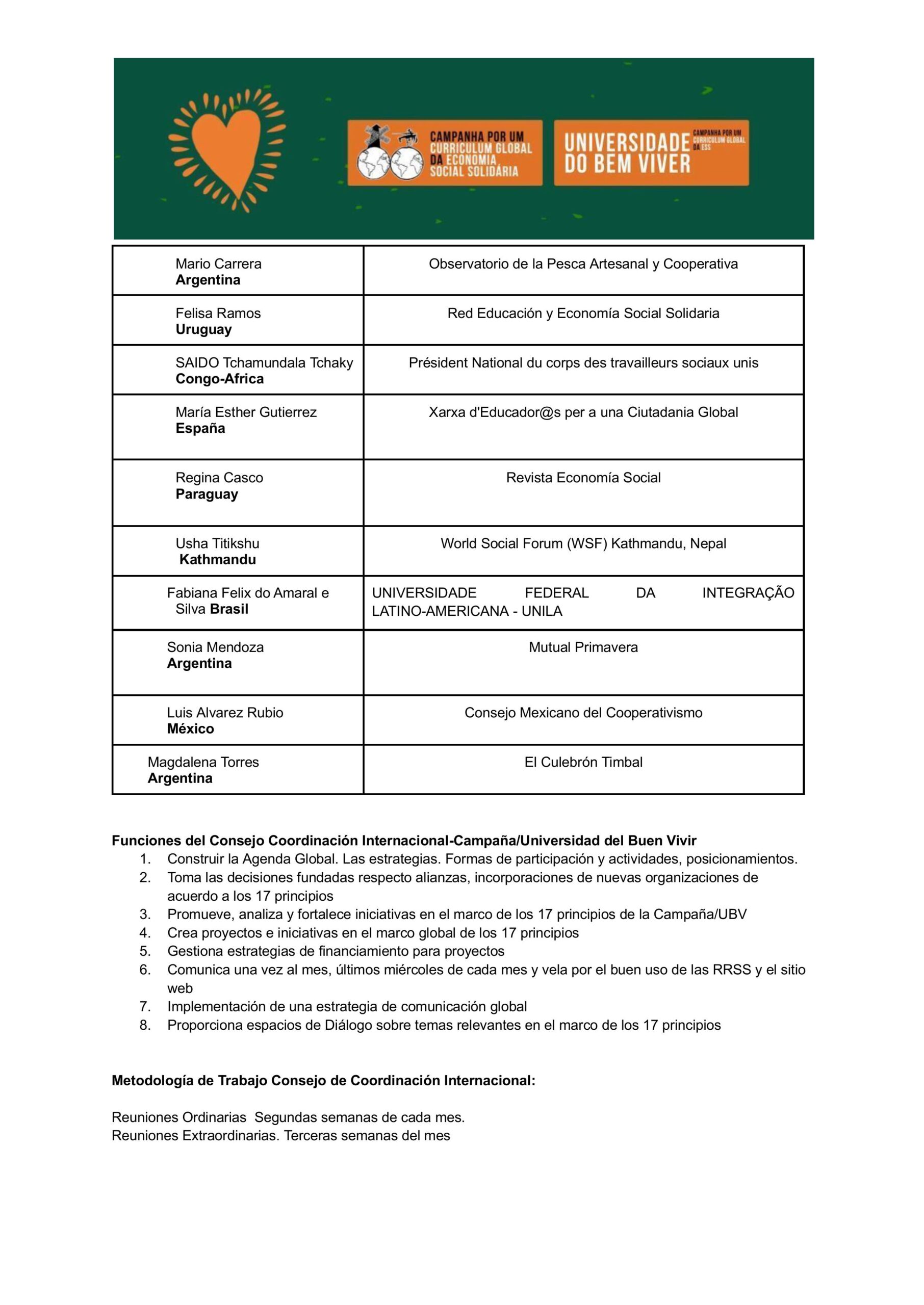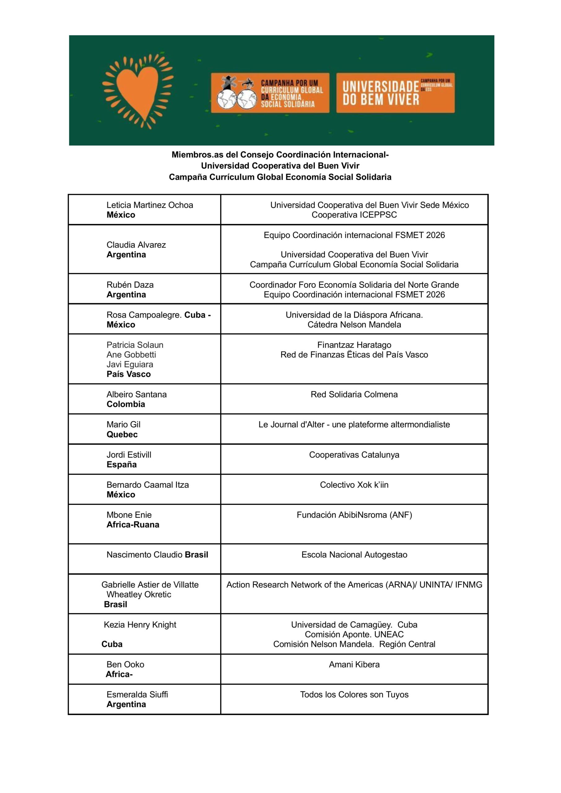 Consejo Coordinación Internacional 2026-CampañaCurrículum Global/Universidad Cooperativa del Buen Vivir/ International Coordinating Council-Global Curriculum Campaign/Cooperative University of Good Living/Conselho Internacional de Coordenação – Campanha Global de Currículo/Universidade Cooperativa do Bem Viver/Conseil international de coordination – Campagne mondiale pour les programmes d’études / Université coopérative du bien-vivre