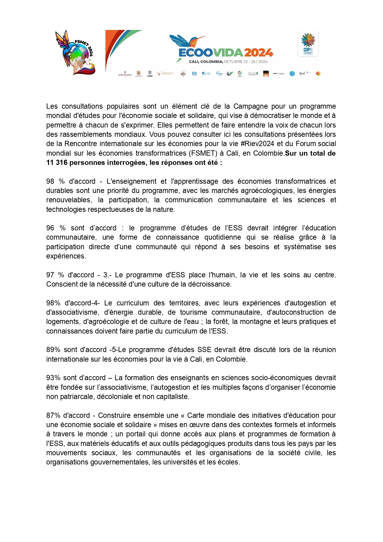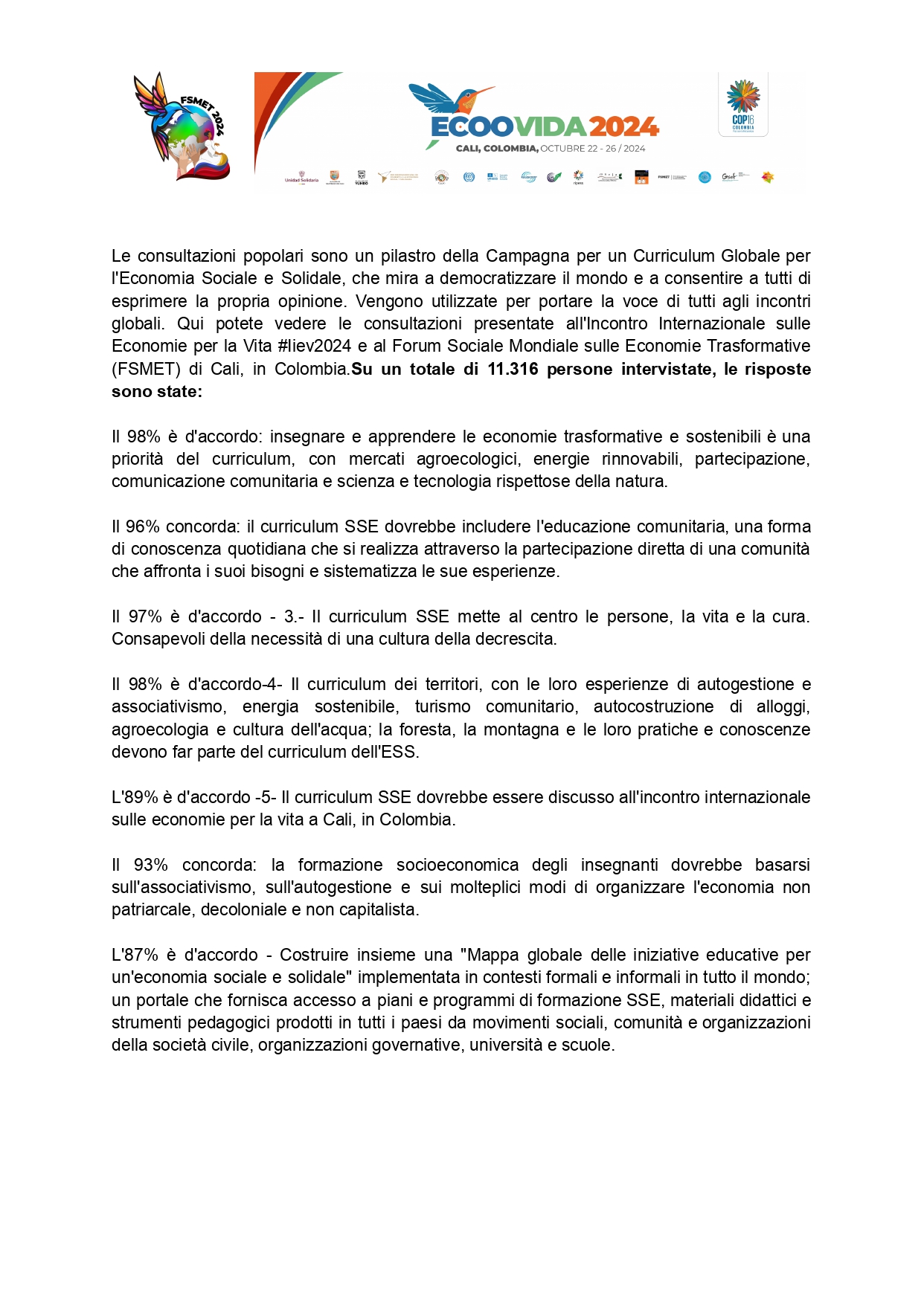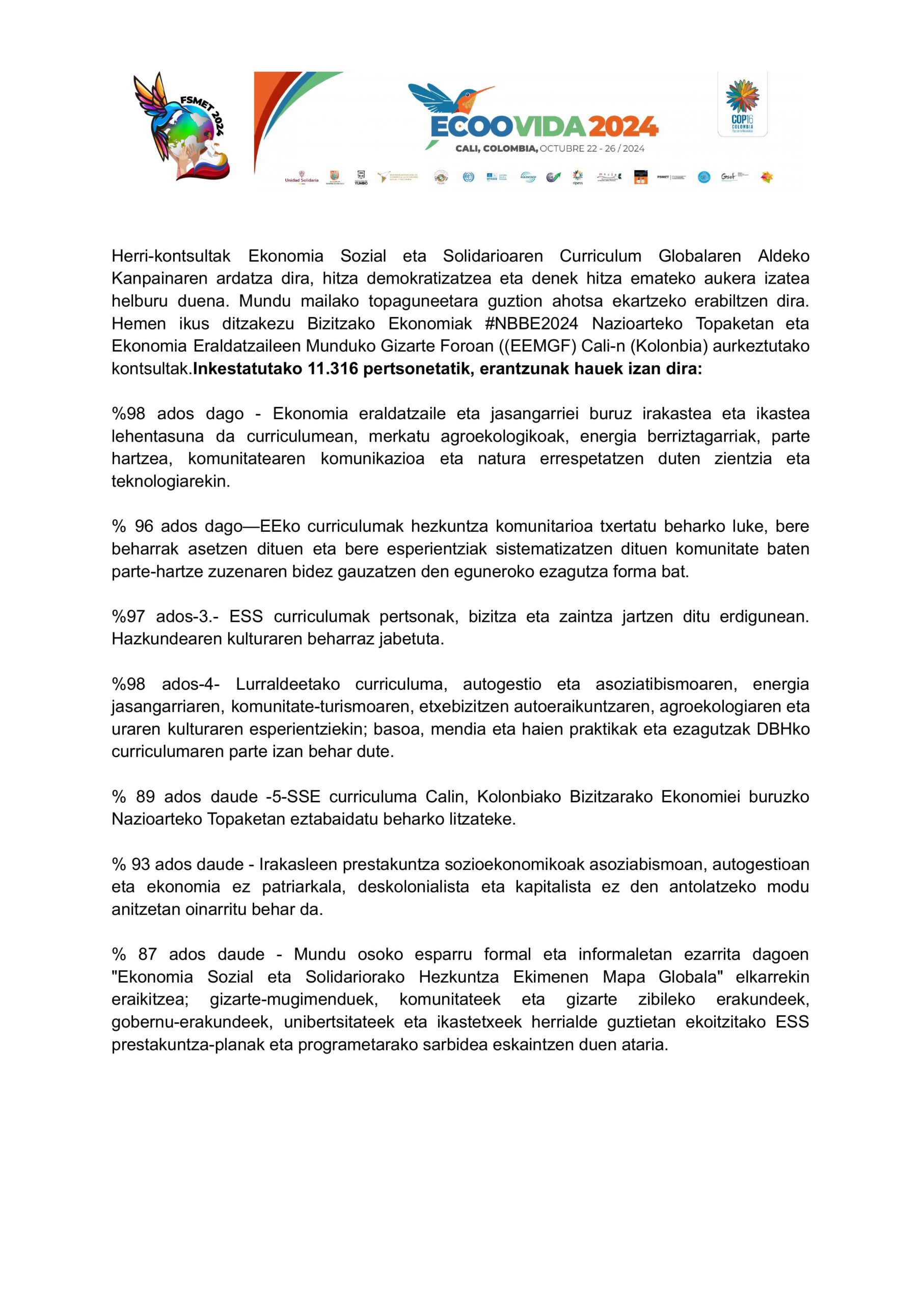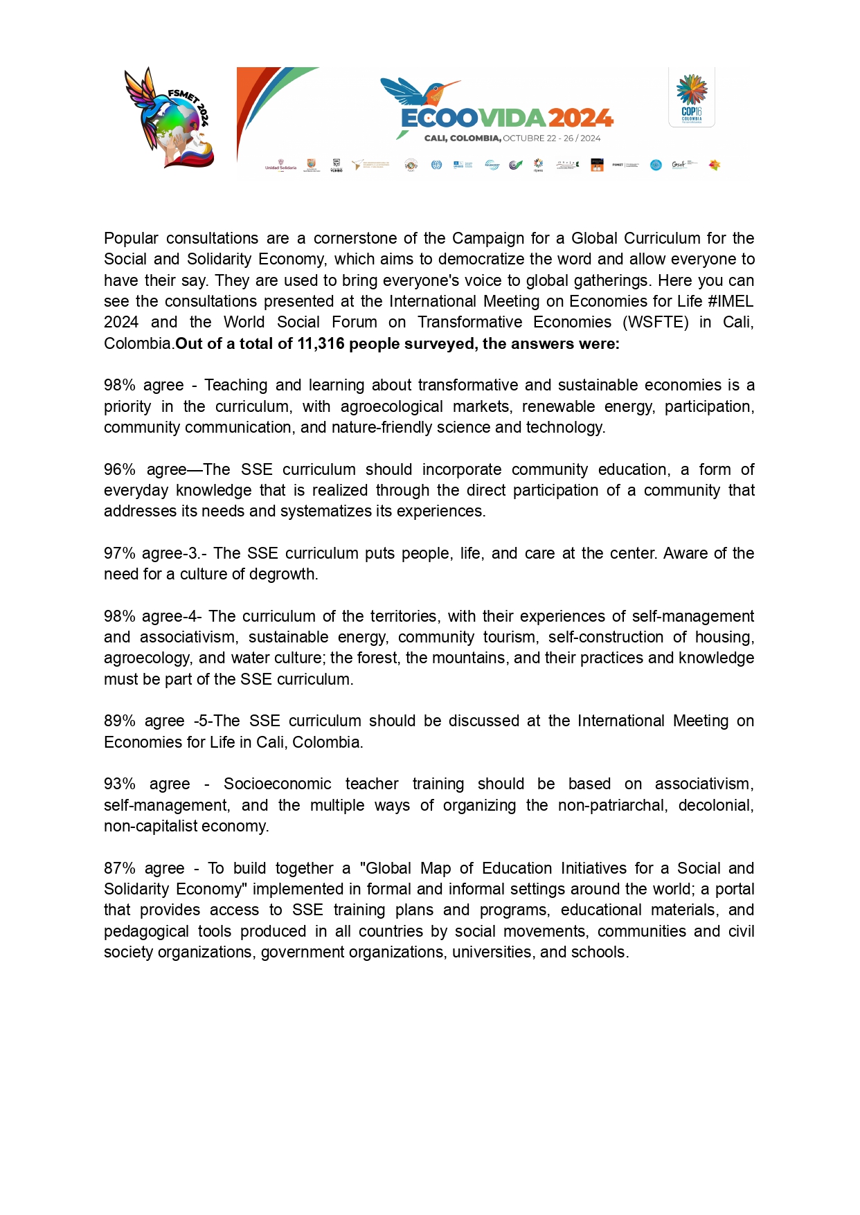 Popular consultations are a cornerstone of the Curriculum Campaign to democratize the word and allow everyone to have their say. They are used to bring everyone’s voice to global gatherings. You can see the consultations presented at #Ecoovida 2024 and WSFTE Cali, Colombia in Spanish, Catalan, Portuguese, Basque, Arabic, English, French, Galician, Italian